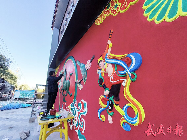 古浪香林老街沉浸式文化街区。该街区坐落于古浪县城北部区域,汉唐风格的建筑。街区墙面镌刻着古浪民谣,字句间皆是儿时的风土记忆,瞬间将时空拉回80年代的市井烟火里。该文化街区是以餐饮、休闲娱乐、民俗文创以及红色旅游等文旅项目为一体的街区。武威日报记者孙煜东